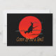 Comece as festividades para a sua festa de Halloween com este legal convite de Halloween. Arte original mostra uma bruxa tola cavalgando sua vassoura com uma Lua vermelha de sangue no fundo e acena para seus convidados com "Venha por um feitiço." Torne seus convites para festas de Dia das Bruxas mais especiais quando você adicionar o comando Venha por um envelope e selos postais de Vícios e Versos. Faça uma festa de excelente.