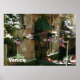Adorável Veneza, poster de viagens italiano, com uma foto realçada de um gondoleiro ao lado de um prédio de tijolos floral carregado. Excelente de arte de parede.