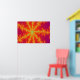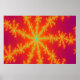 Este impressão de cor brilhante apresenta uma imagem fractal que lembra uma tempestade violenta em Vênus. Ele tem um fundo laranja brilhante com linhas amarelas brilhantes saindo do centro que se parecem com raio queimando. No centro de cada raio há uma linha azul que me lembrou de uma veia que resultou no título "Venous Thunderstorm".
