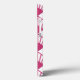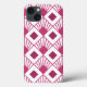 Esta capa de telefone tem um design de deco de arte de diamantes coloridos de beterraba com linhas diagonais e diamantes de beterraba mais escuros em um campo de branco.
