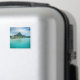Foto magnata quadrada de souvenir de um luxo sobre-água que resorna bungalow de telhado em um resort de férias na clara lagoa azul com vista na ilha tropical de Bora Bora, perto de Tahiti, na Polinésia Francesa.