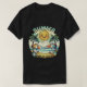 Uma vibrante cena de verão em um modelo de design de camiseta de praia, com um cenário de praia serena com areia ouro e ondas de azure. Um sol sorridente com óculos de sol e uma bebida tropical na mão está no céu, enquanto palmeiras flutuam suavemente na brisa marinha. O primeiro plano apresenta uma gaivota e um par de sandálias de praia. O design geral é brilhante, alegre e convidativo, perfeito para qualquer um que ama a praia e os dias ensolarados.