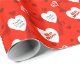 Papel de embrulho de Dia de os namorados vermelho com corações com "Be Mine" e "True Love". Namorados de Gift Wrap para ter em mãos.