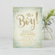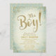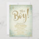 Excelente para um chá de fraldas de rapazes. É um menino com estrelas douradas e amarelas e um fundo verde. Personalize com os detalhes de sua parte um convite gentil.
