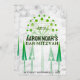 O bar Mitzvah convida em cores verdes e brancas. Árvores brancas e brancas - pessoas ao ar livre, parques e jardins com traços urbanos. Este design moderno adequado para o menino e, em breve, para ser jovem que ama a natureza, e talvez goste de ir acampar e explorar ao ar livre.