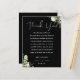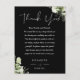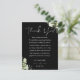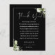 Um elegante obrigado de celebração floral verde floral preto e branco, seu cartão de recepção. Personalizado com seu obrigado especial, você define a mensagem na tipografia do na moda. Um obrigado especial para os seus hóspedes. Projetado por Thisnotme©
