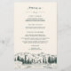 O nosso casamento cômico ou menu de eventos especiais apresenta os seus cursos iniciais, entretenimentos e sobremesas acentuados com uma ilustração esboçada de picos de montanha, pinheiros e um rio fluido, com "menu" no topo em letras elegantes de caligrafia. Coordena-se com a nossa coleção de casamentos do Mountain Sketch.