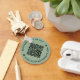 Chaveiro de Código QR personalizável, com um plano de fundo verde de sábio. Para gerar um novo código QR no design, adicione o URL do seu site ou identificador de mídia social no recurso " personalizar este modelo".