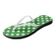 Chinelos verdes com um padrão de bolinhas brancas.