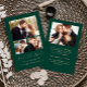 Essa simples e minimalista placa Save the Date apresenta uma colagem de fotos, com uma foto horizontal no topo e duas fotos quadradas abaixo. As palavras "Salvar a Data" aparecem num elegante guião de escrita manual dourada, seguido dos nomes dos casais, da data do casamento e da cidade em sans serif, num fundo verde esmeralda. Adicione uma quarta foto horizontal ao verso, juntamente com uma mensagem mais detalhada com informações adicionais.