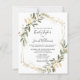 Este Convite de casamento Geométrico Verde e Dourado é perfeito para um primavera, verão ou casamento outono. O presente convite inclui folhas e galhos de cor aquosa de oliveira verde e galhos com acentos de ouro e armação geométrica de ouro. Faça este convite seu, incluindo seus nomes e todos os detalhes do seu casamento. Para mais personalização, clique no link "personalizar mais" e use a ferramenta design avançada para modificar este modelo. Adicione uma foto ao verso para personalizar ainda mais este convite.