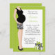 Este convite verde unisex do chá de fraldas caracteriza uma mamã grávida vestir uma saia preto e branco do impressão da zebra com presentes das bolinhas.