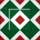 Aperfeiçoe para projetos do tecido do Natal. Um teste padrão corajoso, gráfico de formas verdes e brancas de bloqueio do diamante. Cada diamante branco contem um diamante vermelho pequeno que adiciona a profundidade ao design original.
