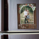 Este design apresenta coloração aquosa holly e eucalipto em torno de uma imagem arquivada com uma estrutura de folha de ouro.