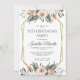 Uma elegante cor-de-água, cor-de-rosa, cor-de-rosa, com um elegante convite de aniversário 50º verde com estrutura dourada. Sotaque floral no fundo do convite.
