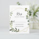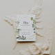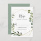 Estas folhas geométricas tropicais verdes deixam os cartões de RSVP espanhóis perfeitos para um casamento moderno. A design apresenta lindas folhas verdes pintadas à mão, enfeitando um quadro geométrico dourado.