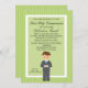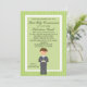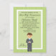 Comece a comemorar com este adorável convite para aqueles rapazes especiais Primeira Comunhão Sagrada. Tem um verde limão com uma borda verde clara listrada. no centro há um centro verde claro com uma borda branca ao redor dele Há um garoto adorável vestindo uma cinza com uma gravata azul. Ele tem cabelo castanho. Veja os muitos outros itens nesta linha, como etiquetas, postagens, notas de agradecimento e muito mais.