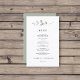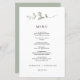 Convites minimalistas de Menu de Casamento - apresenta um galho elegante de aquarela e texto preto simples. O reverso deste cardápio elegante é verde pastel empoeirado.