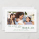 Este mínimo de verde quanto mais o cartão de feriado de anúncio de nascimento mais feliz for o perfeito cartões de natal simples. O design apresenta a tipografia verde e branca clássica, emparelhada com uma fonte rustica, mas elegante, com estilo à mão. Personalize o cartão com sua foto de família, nomes e ano na frente e seu anúncio de nascimento de bebê no verso.