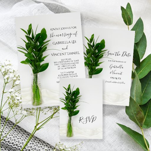 Greenery on White Wedding StationeryCriado por Lora Severson