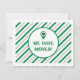 Marque sua nova localização no Texas para todos os seus amigos e familiares com este cartão de anúncio. Fundo riscado que lembra as cartas de correio aéreo antigas em vários tons. O marcador na frente inclui o estado do Texas. Sala atrás para seu novo endereço e foto. Vem em laranja queimada, marrom, vermelho, bandeira estadual azul, verde, roxo, laranja, preto e amarelo - mais baseado nas cores da escola estadual. Produtos correspondentes disponíveis.