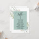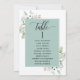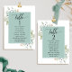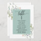 Ajude seus convidados a encontrar sua mesa com os cartões elegantes de lugares verdes com nomes de convidados. Quadro com nomes de hóspedes no Eucalyptus verde e delicados detalhes de cor de água verde. Cartões duplos para que os hóspedes possam procurar os dois, frente ou verso pelos seus nomes. Espaço livre ao redor, dando-lhe a liberdade de usar clipes ou furos de perfuração para monitores suspensos, ou usar o suporte/quadro da mesa. Detalhes da caligrafia escrita à mão. Verde em uma bela mistura de tons verdes, azuis, beige bronzeados e terracota. Também disponível com quadro em branco, em azul-neblina e em tom bege. Ter todos os números de tabela na mesma cor ou cores misturadas de acordo com o tema de cor do evento. Parte da nossa coleção "Elegante Verde Eucalyptus Wedding and Events" com uma variedade de produtos coordenadores disponíveis.