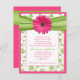 O texto sobre esta margarida cor-de-rosa com fita verde e convite de aniversário verde de damasco floral é perfeitamente personalizável. Para alterar o texto, use a opção personalizar. Para alterações mais abrangentes no convite, incluindo a alteração da fonte, cor da fonte, tamanho da fonte ou posicionamento do texto, use a opção personalizar. Este é um bonito convite de aniversário floral rosa e verde. Excelente para fãs de margarida gerbera. Você pode adicionar um cartão de receita para a aniversariante com os convites para seus hóspedes preencherem. Basta mudar o texto do convite para explicar aos seus convidados.