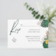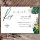 Torne o planejamento do seu casamento mais suave e elegante com este cartão de RSVP sofisticado, apresentando folhagens tropicais exuberantes e tipografia moderna e limpa. Com um design minimalista de fundo branco e sotaques botânicos em verde sage, ele adiciona um toque de beleza natural à sua papelaria de casamento.