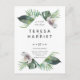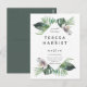 Convite rústico tropical verde, com palmas, florais tropicais em um sutil design de aquarela. Casamento de verão, casamento rústico ou até mesmo um casamento de jardim com um tema tropical.