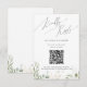 Entra num mundo de encantamento com a nossa vitória esbranquiçada e o cartão RSVP de código QR de ouro, perfeito para o seu casamento de primavera botânico. Adorado com eucalipto verde sábio e sotaques dourados, este RSVP exude elegância e capricho moderno. Imaginem passear por um jardim de verão mágico, rodeado pelos sons suaves da natureza. A design captura sem esforço o charme rústico do outono com suas matizes verdes claras, evocando a beleza da estação em mudança. Com um toque de sofisticação minimalista e um clássico talento boêmico, os detalhes da folha de ouro falso e sombreado somam um toque de glamour e romance. Completado com uma sensação graciosa de conto de fadas, este RSVP exude a classe e mostra o esplendor natural do outono. Por favor, sinta-se à vontade para nos contactar com quaisquer perguntas sobre o design, e deixe-nos ajudá-lo a fazer o casamento dos seus sonhos.