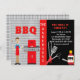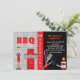 Ter um CHURRASCO, um biscoito de verão, ou uma festa no quintal... convide seus convidados com este convite moderno e moderno. O lado esquerdo tem um fundo de verificação preto-e-branco com "CHURRASCO" em vermelho e um homem vestindo um avental vermelho segurando os utensílios do cozinhar na mão está ao lado de uma grade de gás. Lá em baixo está uma faixa vermelha para adicionar seu nome para personalizar este convite. Na metade direita do convite está onde você adiciona as informações da sua parte. Na parte de baixo há utensílios grelhadores como uma espátula, pinças, pincel de molho de CHURRASCO e um frasco de molho de churrasco. Veja os muitos outros produtos correspondentes que oferecemos nesta linha: placas de papel, guardanapos de papel e muito mais.