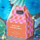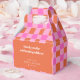 Caixa de Agradecimento Personalizada com Arte Xadrez Abstrata Rosa Laranja para Chá de Noiva