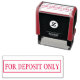 Este elegante design de carimbo contém a mensagem "SOMENTE PARA DEPÓSITO". Ele pode ser usado por uma pessoa ou um administrador do escritório para adicionar facilmente um despejo restritivo a uma verificação.
