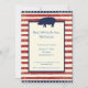 Um vermelho, um branco e você patrióticos convite de festas customizável do assado que caracteriza listras vermelhas e do marfim e estrelas afligidas e uma silhueta de um porco. O convite é viável para uma reunião genérica do assado do verão, um quarto do partido de julho (Dia da Independência), o aniversário, a graduação, a reunião, a bagageira, o chá de panela, os partidos de veado ou mesmo um evento incorporado.