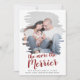 Este vermelho escovado mais o cartão de feriado de anúncio de parto é o cartões de natal simples perfeito. O design único e artístico apresenta sua foto em pincéis pintados por aquarelas com caligrafia moderna em vermelho e branco. Personalize o cartão com sua foto de família, nomes e ano na frente e seu anúncio de nascimento de bebê no verso.