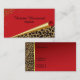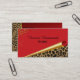 Cartão de visita à moda feito no vermelho, com gráficos de um canto inferior ondulado goldtone, na parte dianteira, com um teste padrão manchado marrom e preto do jaguar, abaixo dele. Os flourishes goldtone elegantes decoram a parte dianteira do cartão. O texto preto, na parte dianteira e na parte traseira, está pronto para personalizar a suas necessidades. Bonito esteja para fora o cartão que embala uma grande impressão.
