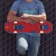 Skateboard Vermelho com Estrelas Azuis desenhadas por HAMbyWhiteGlove.