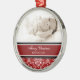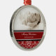 Ornamento da mamã do Feliz Natal customizável com sua própria foto de família no vermelho elegante, cor damasco floral clássica preto e branco. Um presente à moda do Natal para a mamã esta época natalícia.