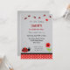 Convite do aniversário com tema do joaninha e combinação de cor preto-vermelha.