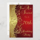 Seus convidados amarão este personalizados, o ouro e o convite de aniversário vermelho do 70 com vermelho e redemoinhos elegantes do rico do ouro. Este é um convite perfeito do marco miliário. Simples contudo festivo, o IS-IS elegante, chique, clássico, elegante do convite de aniversário do 70 uma maneira apropriada de comemorar seu convidado aniversário de honra do seventieth com estilo que é tradicional com uma sugestão do estilo moderno, contemporâneo. Você personaliza facilmente este convite de aniversário do 70 enchendo nos modelos dados. os aniversários do 70 são significados ser comemorados. Porque não se certificar de você enviar o seventieth convite de aniversário perfeito, perfeito para homens ou para mulheres, a seus convidados. Esta festa de aniversário convida marcas a ocasião especial ao ser muito orçamento amigável para o anfitrião ou a hospedeira consciente do orçamento. Cartão de RSVP: