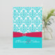 Este convite azul do casamento do vermelho e da cor damasco do aqua adicionaria um toque vibrante a seu evento especial. Note por favor que a fita e os diamantes são obras de arte, e não seja real. O texto e o papel são tudo customizáveis. Se você exige quaisquer outros artigos de harmonização, envie-me por correio electrónico por favor seu pedido.