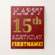 Este quebra-cabeça de aniversário simples e divertido apresenta a mensagem "HAPPY 15 BIRTHDAY", com o "15" a ter uma aparência falsa/de cor dourada. Também apresenta um nome personalizado e um fundo de cor vermelha. Pode ser uma maneira divertida e especial de dar uma saudação de aniversário personalizada a alguém que comemora seu décimo quinto aniversário. [~Z0000200]