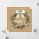 Este cartão de feriado maravilhosamente desenhado apresenta um elegante trabalho de arte de aquarela de uma coroa embelezada com um arco branco, pinecones, folhas verdes ocas, bagas vermelhas e agulhas de pinheiro. A sua design, porém rústica, captura a essência da época de feriados de dezembro e apela àqueles que apreciam ilustrações artísticas. O cartão oferece opções de personalização, permitindo que você o personalize com o nome da empresa, o nome da família ou os nomes individuais. Além disso, você pode incluir um poema de saudação sazonal personalizado na frente, fazer-o uma escolha criteriosa para espalhar alegria de férias.