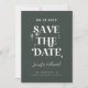 Retroceda salve o cartão de data com uma fonte achatada que diz "salve a data" com estrelas modernas de meio século. A cor de fundo é verde-floresta. Você pode adicionar uma foto atrás.