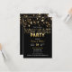 Convites personalizados de VÉSPERAS DE ANO NOVO modernas. Acende estrelas e luzes em tons dourados. Fundo preto. FESTA E 31 em folha de ouro. Envie estes convites elegantes para a sua próxima festa de véspera de ano novo!