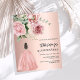 Um convite moderno, na moda e glamouroso para uma Quinceañera, festa de aniversário 15. Um fundo rosa de ouro decorado com grandes rosas cor-de-rosa e verde, uma garota vestindo um vestido de bola. O nome é escrito com um moderno estilo escrito à mão. Personalize e adicione os detalhes da sua festa. 1 folha = 1 convite impresso de borda a borda.