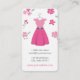 Uma cartão de visita vertical feminina com um vestido cor-de-rosa cercado por flores cor-de-rosa. Excelente para roupas de meninas, costureiras que criam roupas de meninas caseiras, trocas de roupas, vendas de tecidos, doce anúncio de 16 anos e muito mais.