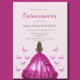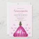 Vestido cor-de-rosa elegante Quinceañera convidado. Fácil de mudar o texto. Bonito vestido de aquarela e design de borboleta.
