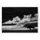No início da manhã, preto e branco de um Bison se alimentando perto de uma fumaça de vapor no Parque Yellowstone.