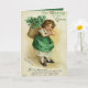 Vestir-se da criança do Victorian do cartão do dia do St Patrick verde com a cesta do trevo.